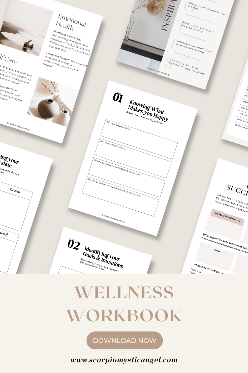 Welcome to your Wellness Workbook, a powerful tool designed to support and empower you on your path to holistic well-being. This workbook is more than just a place to record your thoughts; it's a sanctuary where you can explore, discover, and cultivate a balanced and fulfilling life. Whether you're looking to improve your physical health, nurture your mental well-being, or find harmony in your daily routines, our Wellness Workbook is here to guide you every step of the way.